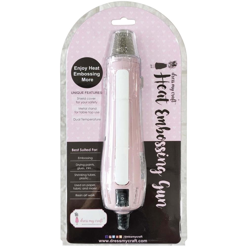 Heat gun από την Dress My Craft, ιδανικό για embossing, για να στεγνώνετε γρήγορα κόλλες και χρώματα, για shrink plastic και όχι μόνο. Έχει 2 σκάλες θερμότητας, εύχρηστο διακόπτη on/off, προστατευτικό κάλυμμα στην άκρη, εργονομική λαβή και ενσωματωμένο stand για να το στηρίζετε όταν δεν χρησιμοποιείτε.