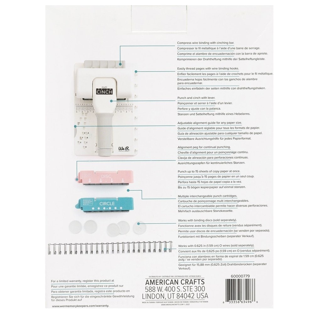 Το Multi-Cinch Bookbinding Tool της We R Makers είναι ένα πολυχρηστικό μηχάνημα βιβλιοδεσίας για δημιουργούς που θέλουν ευελιξία και έλεγχο. Σου επιτρέπει να τρυπάς με ακρίβεια και να δουλεύεις διαφορετικές τεχνικές βιβλιοδεσίας, από χειροποίητα notebooks μέχρι art journals και planners. Ένα εργαλείο-βάση για κάθε bookbinding setup.