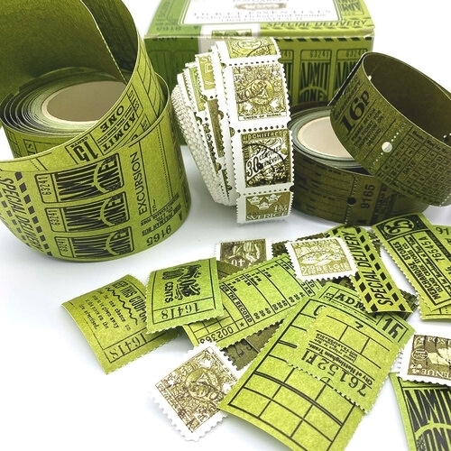 Η συσκευασία περιλαμβάνει 3 ρολά με vintage διακοσμητικά, με vintage στοιχεία εποχής, όπως γραμματόσημα, εισιτήρια εισόδου, τραίνου, κουπόνια, ειδικές επισημάνσεις και πολλά άλλα.
