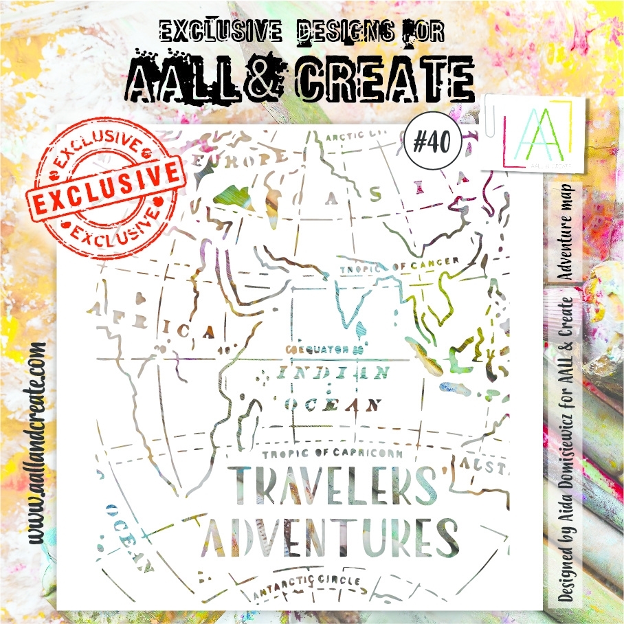 Το Adventure Map Stencil Nr. 040 της AALL & Create είναι ένα θεματικό στένσιλ σχεδιασμένο για creators που αγαπούν το storytelling μέσα από τα ταξίδια. Περιλαμβάνει παγκόσμιο χάρτη και τη φράση “travelers’ adventures”, ιδανικά για backgrounds με έντονη αφηγηματική βάση.