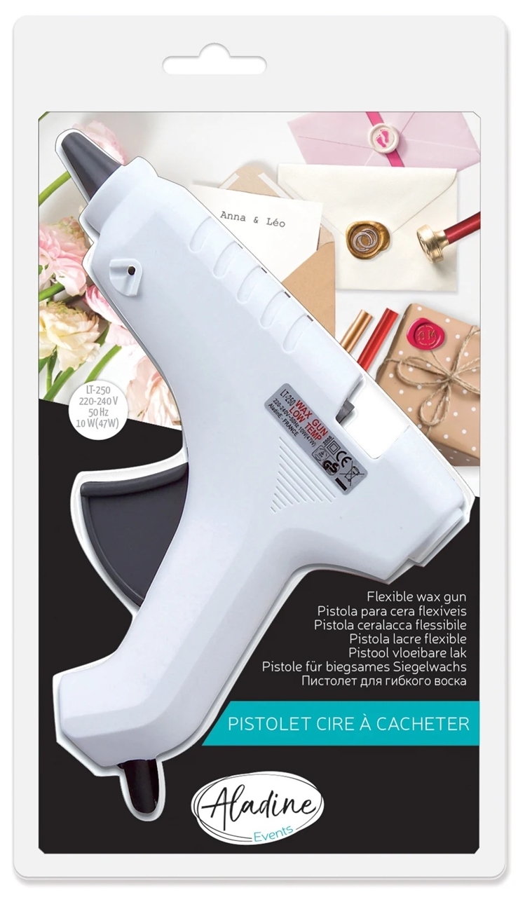 Το Aladine Flexible Wax Gun κάνει τις σφραγίδες βουλοκεριού παιχνιδάκι. Τοποθετείς τη ράβδο βουλοκεριού, περιμένεις λίγα λεπτά να ζεσταθεί και πιέζεις τη σκανδάλη για να απλώσεις όσο κερί χρειάζεσαι ακριβώς στο σημείο που θέλεις. Η ροή είναι σταθερή και ελεγχόμενη, ιδανική για ομοιόμορφους κύκλους κεριού που δέχονται τη σφραγίδα σου καθαρά – χωρίς φυσαλίδες και χωρίς να «τρέχει».