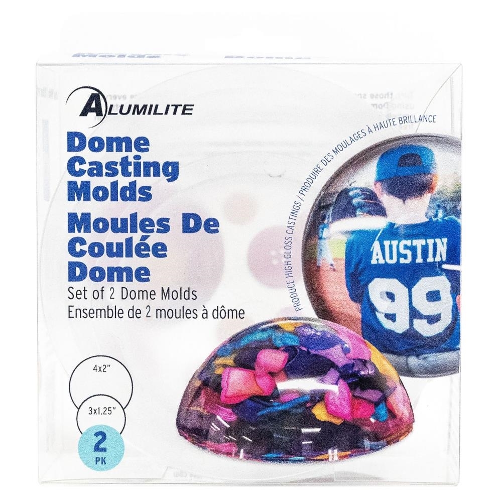 2 καλούπια σε σχήμα θόλου και με επίπεδο πάτο από την Alumilite. Τα καλούπια είναι ιδανικά για να δημιουργήσετε όμορφα πρες παπιέ για το γραφείο σας ή ξεχωριστά διακοσμητικά από ρητίνη! Προσθέστε φωτογραφίες, λουλούδια, φύλλα, κουμπάκια, μικρές διακοσμητικές φιγούρες, glitter, κομφετί ή άλλα διακοσμητικά και φτιάξτε πρωτότυπα αναμνηστικά δώρα για τους αγαπημένους σας, και γιατί όχι;, και για εσάς!