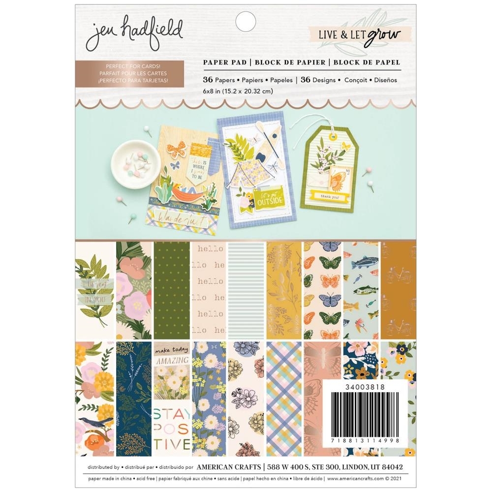Μπλοκ Scrapbooking από τη συλλογή Live & Let Grow που έχει σχεδιάσει η Jen Hadfield για την American Crafts. 36 φύλλα μονής όψης με πεταλούδες, ψάρια, floral μοτίβα και άλλα.