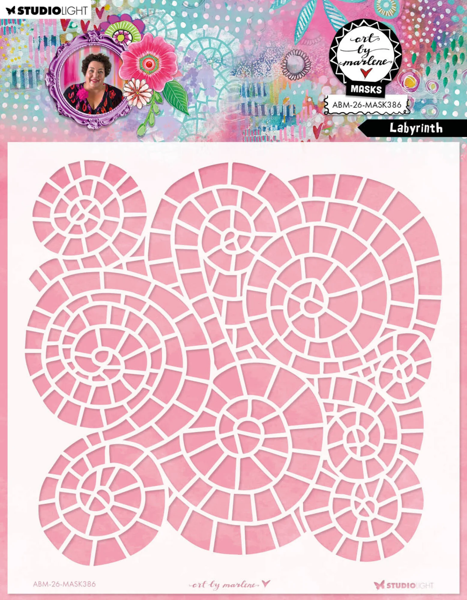 Το Labyrinth Mask της Art by Marlene φέρνει ένα δυναμικό, γεωμετρικό στοιχείο στις δημιουργίες σου. Το μοτίβο λαβύρινθου δημιουργεί ένα παιχνίδι γραμμών που δίνει βάθος και ρυθμό στο φόντο σου.
