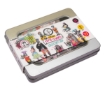 - 128 εφήμερα με φιγούρες (64 σχέδια, 2 μεγέθη) μέσα σε ένα μεταλλικό κουτί