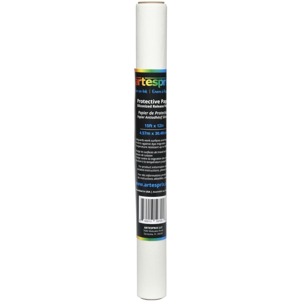 Προστατευτικό χαρτί από 100% σιλικόνη για να προστατεύσει τις επιφάνειες σας από το χρώμα που "ξεφεύγει" κατά τη μεταφορά με heat-setting τεχνικές καθώς το χρώμα μετατρέπεται προσωρινά σε αέριο και ξανά σε στερεό. Και το καλύτερο; Μπορεί να χρησιμοποιηθεί πολλές φορές καθώς είναι ειδικά σχεδιασμένο για να αντέχει τη διαδικασία θέρμανσης σε αντίθεση με κερωμένα χαρτιά που αλλοιώνονται με τη ζέστη. Με τα προστατευτικά χαρτιά της Artesprix μπορείτε να είστε σίγουροι ότι η επιφάνεια σας θα παραμείνει καθαρή μετά από όλα τα έργα σας, έτοιμη για το επόμενο.