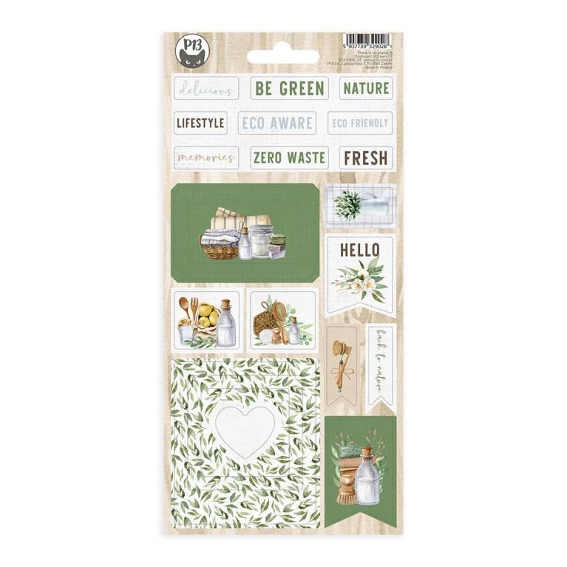 Chipboard αυτοκόλλητα από τη συλλογή There Is No Planet B της P13. Για όλους εσάς τους eco-friendly crafters που κάνουν τη διαφορά και το διασκεδάζουν συνάμα!
