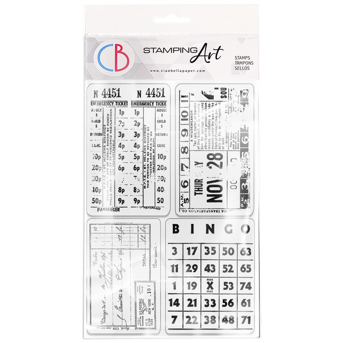👉 Η συσκευασία περιέχει 4 διάφανες σφραγίδες με εικόνες από εισιτήρια, ημερολόγια και άλλα.