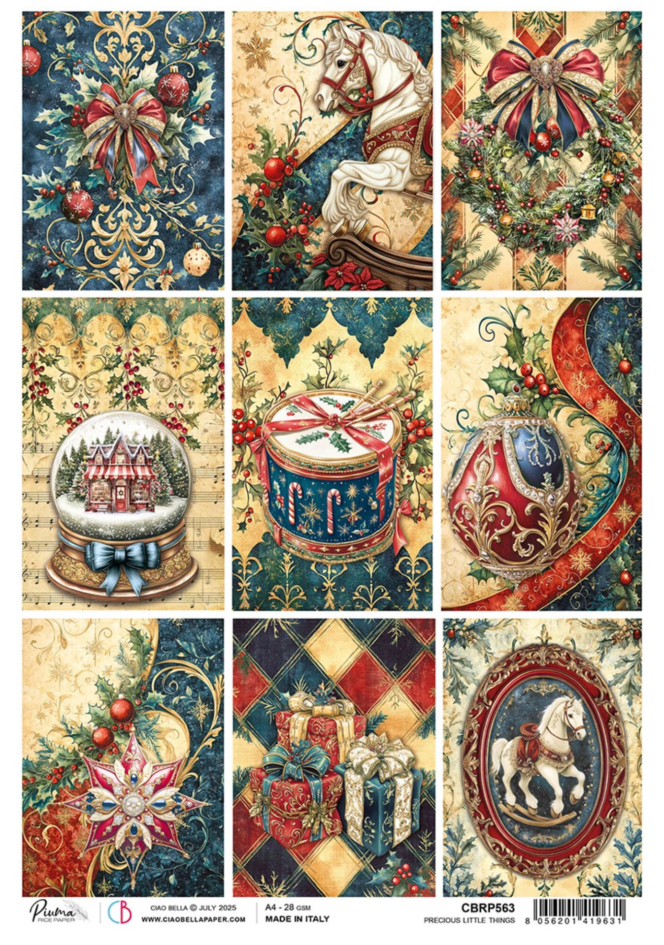 Ιδανικό για κολάζ, decoupage σε έπιπλα και μικροαντικείμενα, mixed media έργα, art journals, junk journals, χριστουγεννιάτικα DIY projects και δημιουργική συσκευασία δώρου, προσφέρει ευελιξία και έντονη festive αισθητική σε πρακτικό A4 μέγεθος.
