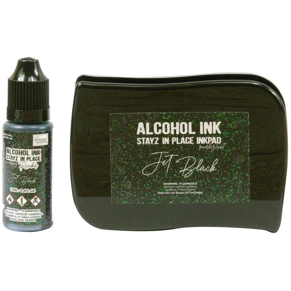 Couture Creations Stayz In Place Pearlised Alcohol Ink Pad Μελάνι Οινοπνεύματος σε Ταμπόν με Ανταλλακτικό - Jet Black, 2τεμ.