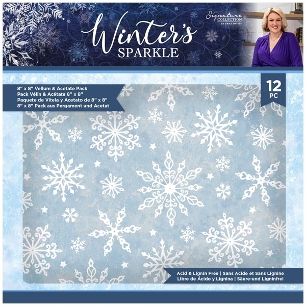 Η Sara Davies σχεδιάζει όμορφες χιονιφάδες και σας προσκαλεί να σκορπίσετε χειμωνιάτικη λάμψη στις δημιουργίες σας! 12 φύλλα vellum και acetate για να κάνετε τις δημιουργίες σας να ξεχωρίσουν.