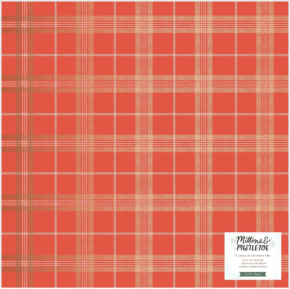 Χαρτί περγαμηνής, διαστάσεων 30,5 x 30,5 cm από τη συλλογή Mittens & Mistletoe της Crate Paper. Το χαρτί έχει φύλλα από χρυσό foil. Μπορείτε να το χρησιμοποιήσετε ολόκληρο ως scrapbooking σελίδα, να το κόψετε σε 4 κομμάτια διαστάσεων 15,24 x 15,24 cm το καθένα. Χρησιμοποιήστε το σε κάρτες, tags, journals, planners και γενικά σε έργα από χαρτί. Θέμα: Χριστούγεννα.
