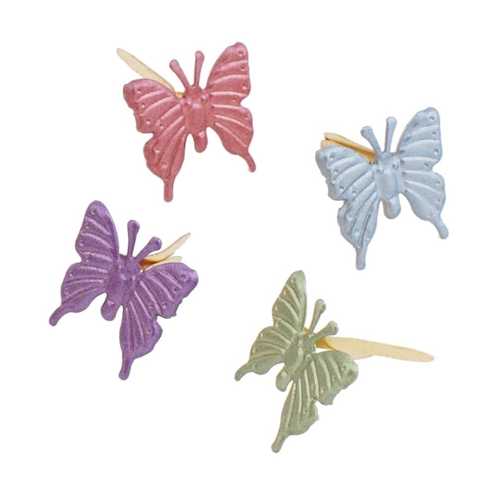 25 μεταλλικά διπλόκαρφα διαμέτρου 12.7mm από την Creative Impressions. Σε σχήμα πεταλούδας και σε 5 παστέλ χρώματα (ροζ, μπλε, κίτρινο, άσπρο και μωβ). Iδανικά για όλα τα paper crafting project σας, όπως scrapbooking layouts, κάρτες, tags και πολλά άλλα.
