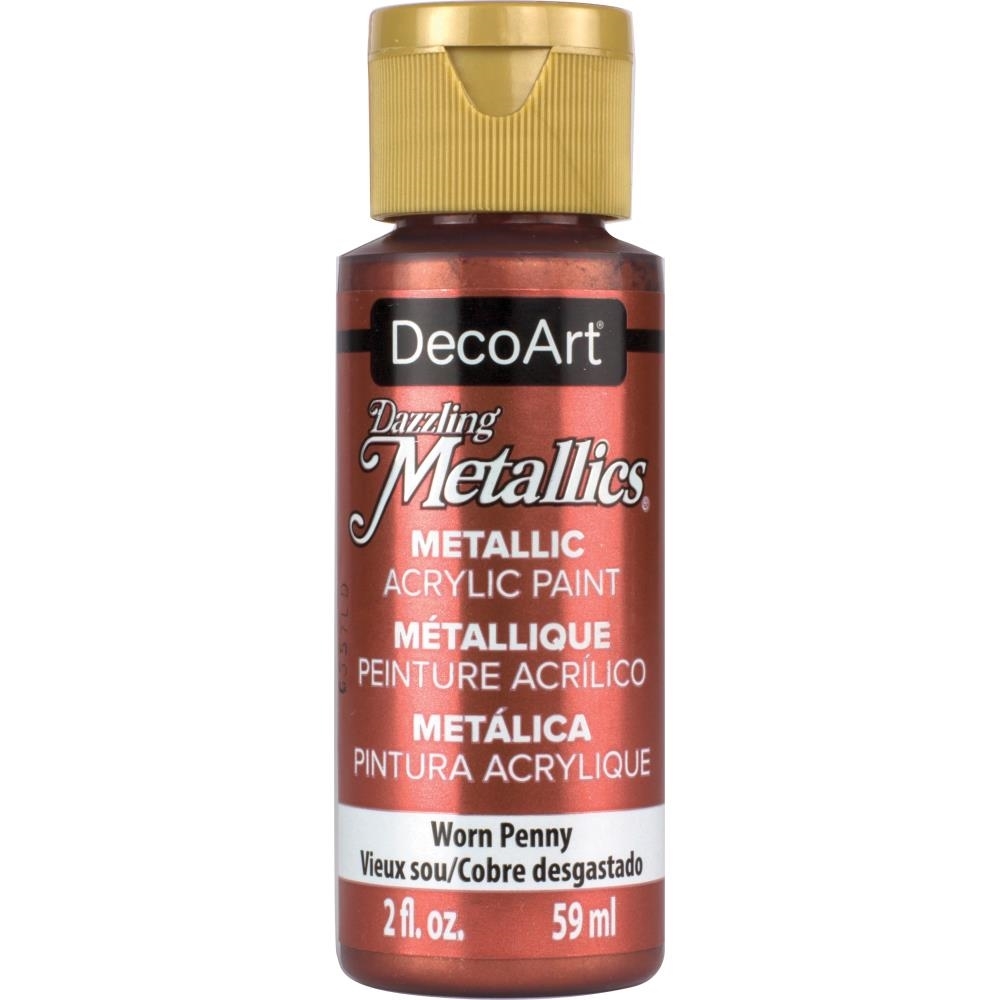 Τα Dazzling Metallics της DecoArt είναι υψηλής ποιότητας, μόνιμα, μεταλλικά ακρυλικά χρώματα που θα δώσουν εντυπωσιακή λάμψη σε όλα σας τα έργα, από ζωγραφική μέχρι χειροτεχνίες και home decor. Περιέχουν ρινίσματα μετάλλων, είναι αδιαφανή και έχουν εξαιρετική καλυπτικότητα. Ανακατεύονται με mediums για διάφορα εφέ, δίνοντας σας ατελείωτες επιλογές. Κατάλληλα για τις περισσότερες επιφάνειες, καμβά, χαρτί, ξύλο, γύψο, ακόμα και για τοίχους!