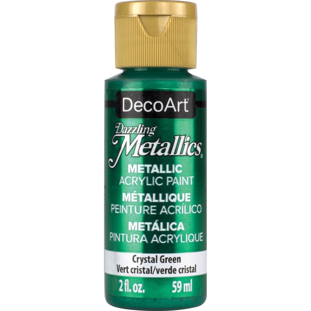 Τα Dazzling Metallics της DecoArt είναι υψηλής ποιότητας, μόνιμα, μεταλλικά ακρυλικά χρώματα που θα δώσουν εντυπωσιακή λάμψη σε όλα σας τα έργα, από ζωγραφική μέχρι χειροτεχνίες και home decor. Περιέχουν ρινίσματα μετάλλων, είναι αδιαφανή και έχουν εξαιρετική καλυπτικότητα. Ανακατεύονται με mediums για διάφορα εφέ, δίνοντας σας ατελείωτες επιλογές. Κατάλληλα για τις περισσότερες επιφάνειες, καμβά, χαρτί, ξύλο, γύψο, ακόμα και για τοίχους!