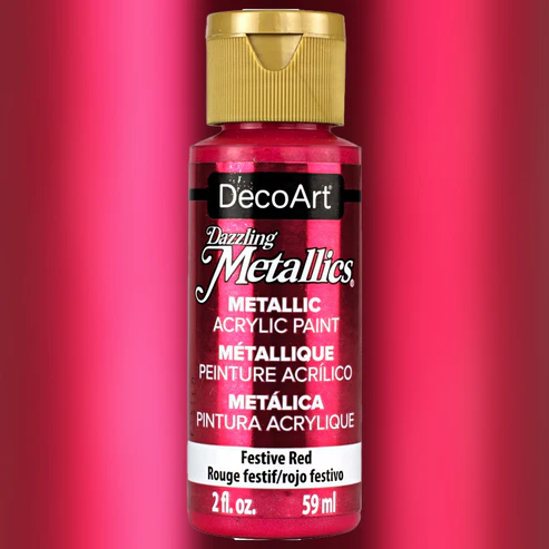 Το DecoArt Dazzling Metallics – Festive Red από τη DecoArt είναι μεταλλικό ακρυλικό χρώμα με βάση το νερό, σχεδιασμένο για εφαρμογές που απαιτούν έντονο, κορεσμένο και καθαρά μεταλλικό κόκκινο αποτέλεσμα.