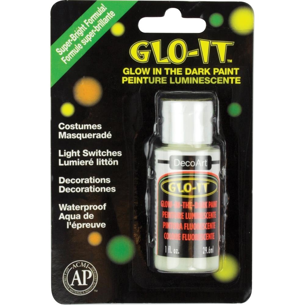 Κάντε οποιοδήποτε project σας να λάμπει στο σκοτάδι με το Glo-It της DecoArt. Χρησιμοποιήστε το μόνο του ή αναμίξτε το με διάφανα ή fluo ακρυλικά. Το εφέ εξασθενίζει σιγά - σιγά αλλά "φορτίζεται" ξανά με την έκθεση στο φως. Μπορεί να χρησιμοποιηθεί σε οποιαδήποτε επιφάνεια μπορείτε να χρησιμοποιήσετε ακρυλικό χρώμα, όπως χαρτί, ξύλο, Styrofoam, πλαστικό, τοίχους και πολλά άλλα. Μπορεί να χρησιμοποιηθεί και σε ύφασμα χωρίς να χρειάζεται κάποιο medium ή heat set.