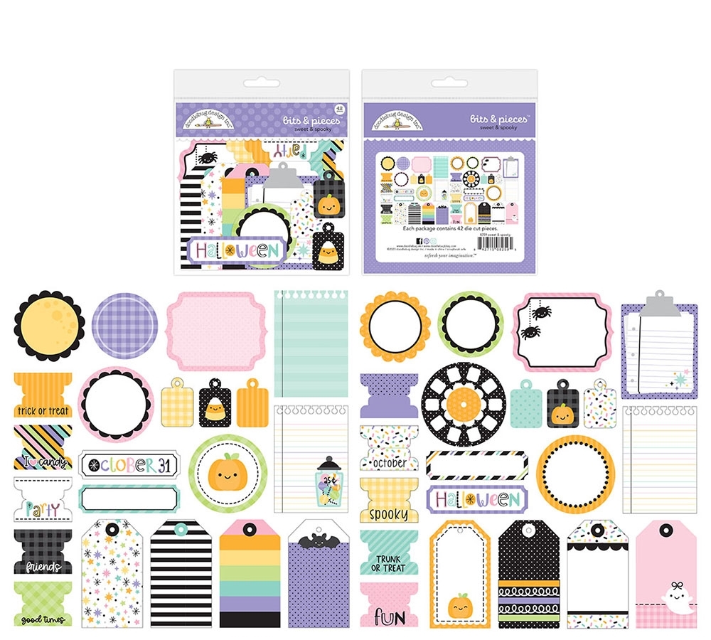 👉 Η συσκευασία περιλαμβάνει 42 διακοσμητικά εφήμερα Bits & Pieces με θέμα το Halloween. Με tags, πλαίσια, ετικέτες και άλλα.