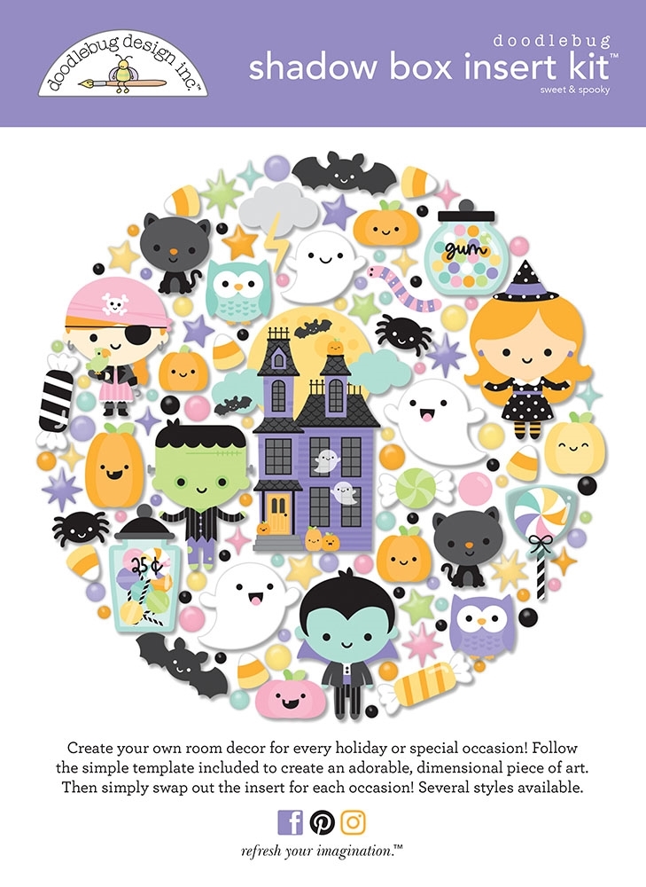 Τα shadow box insert kits της Doodlebug, περιλαμβάνουν όλα τα διακοσμητικά που θα χρειαστείτε για να δημιουργήσετε ένα μοναδικό διακοσμητικό για το παιδικό δωμάτιο, το craft room ή όπου αλλού χρειάζεται χρώμα και καλή διάθεση! Εσείς διαλέξτε το shadow box και είστε έτοιμοι! Και φυσικά και αφού το έχετε φτιάξει είναι πολύ απλό να αλλάξετε απλά το insert στο shadow box για να έχετε κάτι καινούργιο για κάθε περίσταση.