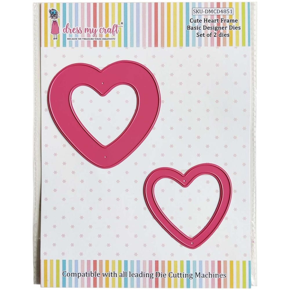 Ένα σετ με 2 μεταλλικές μήτρες κοπής σε σχήμα καρδιάς από την Dress My Craft κατάλληλες για χρήση με όλες τις δημοφιλείς μηχανές κοπής της αγοράς.