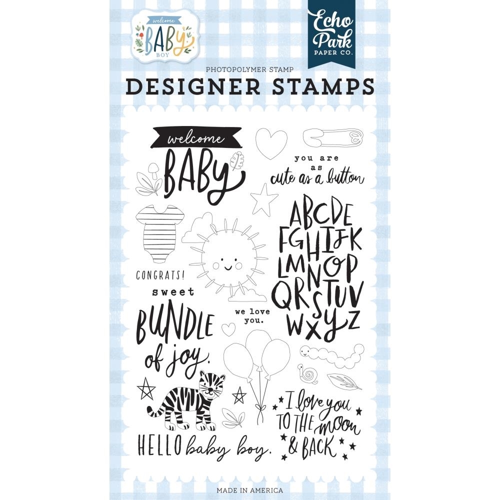 Σετ από 23 διάφανες σφραγίδες από τη συλλογή Welcome Baby της Echo Park, έτοιμες για χρήση με ακρυλικό μπλοκ, σε καρτάλα 10 x 15cm. Συνδυάστε εικόνες και φράσεις για την τέλεια κάρτα ή tag!