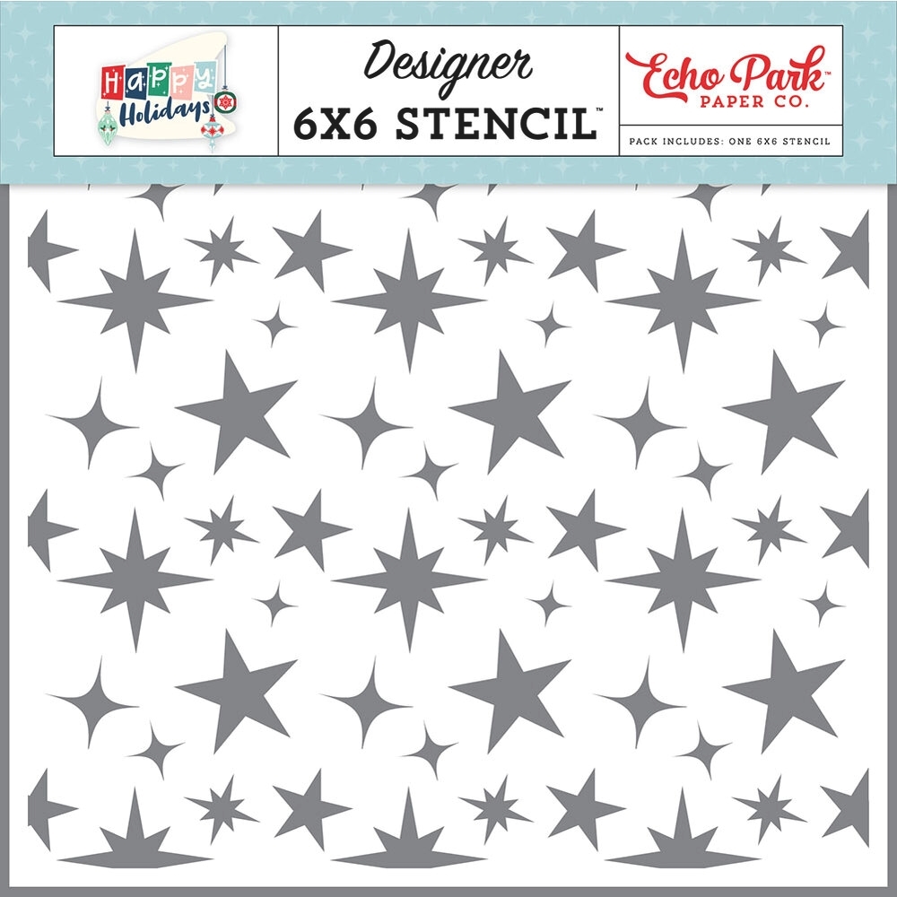 👉Στη συσκευασία θα βρείτε ένα χριστουγεννιάτικο στένσιλ φόντου με αστέρια σε διάφορα μεγέθη.