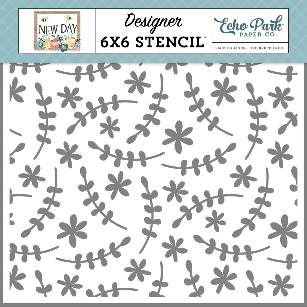 1 στένσιλ με λουλούδια και φύλλα από τη συλλογή New Day της Echo Park.