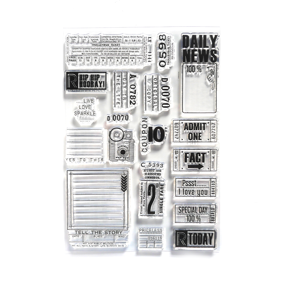 • 19 διάφανες σφραγίδες με εισιτήρια, notes, labels και άλλα