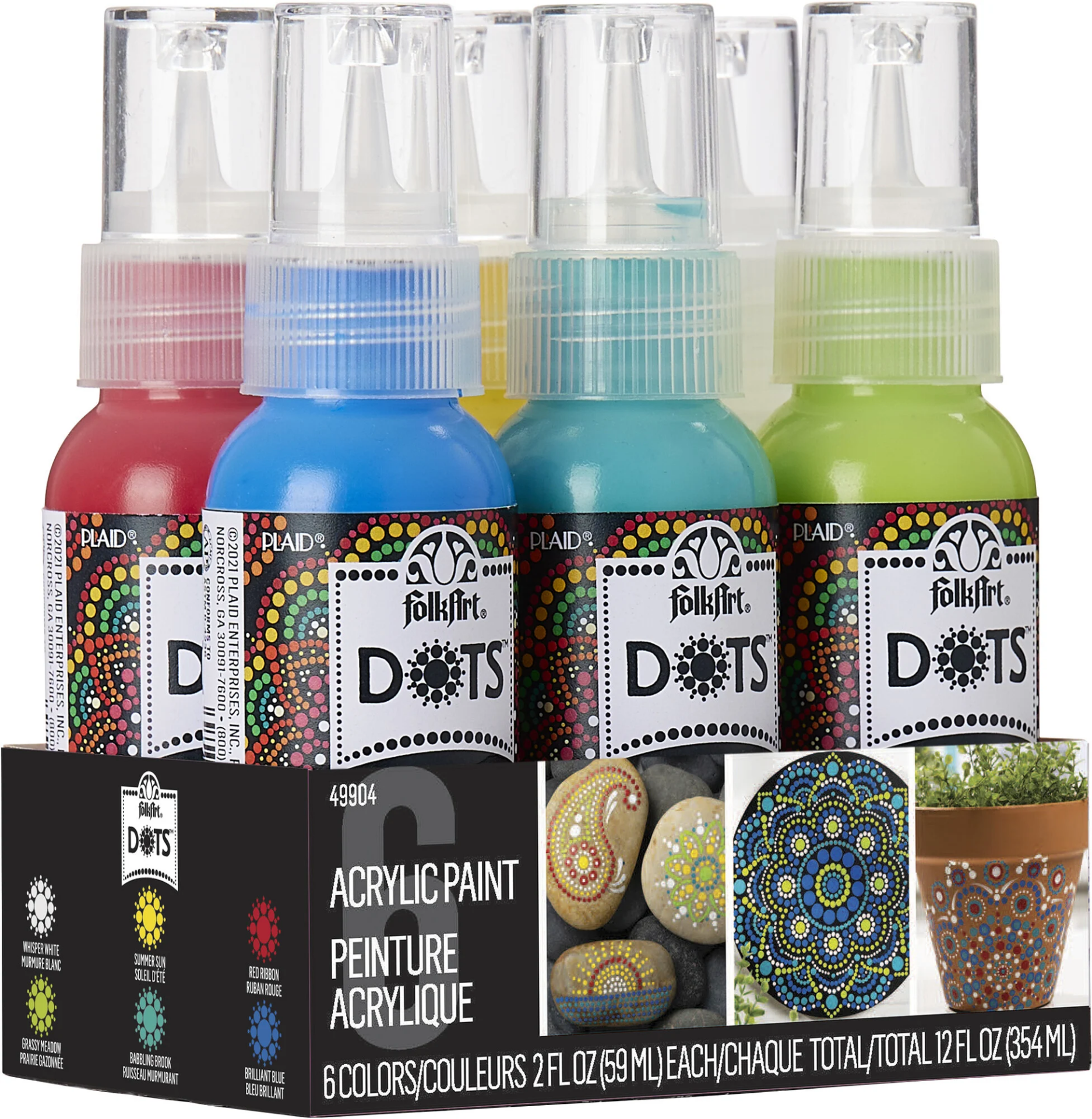 The FolkArt Dots Acrylic Paint is the perfect paint for all your mandala art and so much more. Use the easy-to-use writer tip bottle to get precise and controlled dots as well as words with this bottle of multi-surface acrylic paint. FolkArt Dots have a versatile multi-surface formula with a satin finish - making this paint great for a variety of indoor and outdoor projects as well as top rack dishwasher safe! Easily decorate glass, ceramics, wood, metal, terra cotta, and more with this durable collection of colors. Each color is water-based and non-toxic - perfect for all your mandala arts and crafts. Get lost in the fun and relaxation of mandala art with FolkArt Dots Acrylic Paint!