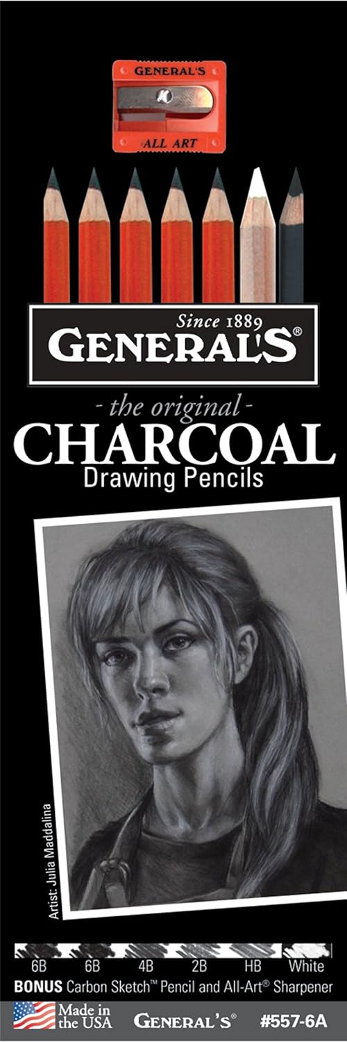 Το General’s Charcoal Pencil Kit 557-6A βασίζεται στη χειροποίητη σειρά κάρβουνου #557 της General’s, γνωστή για το πλούσιο, θερμό και οργανικό μαύρο της. Τα μαύρα μολύβια είναι ελεύθερα λαδιού, γεγονός που τα κάνει ιδανικά για ομαλές μίξεις, σκιάσεις και καθαρές τονικές μεταβάσεις χωρίς γυαλάδα.