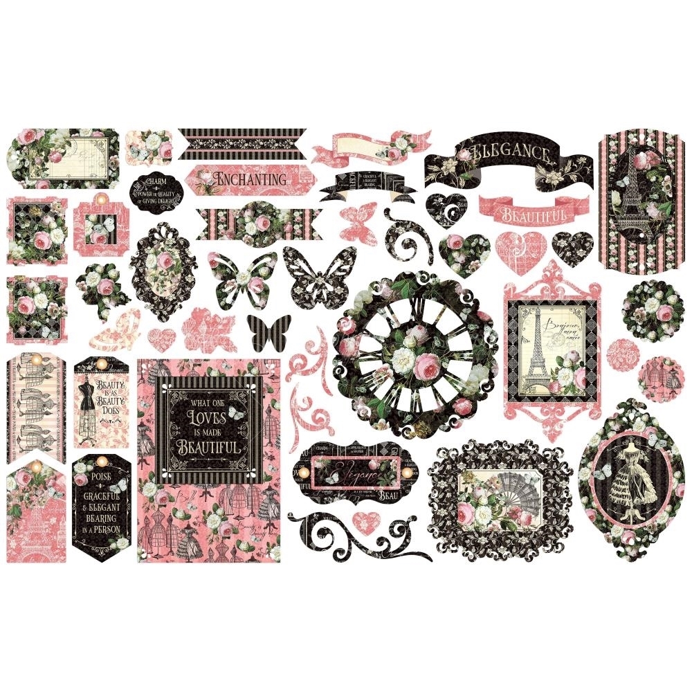 Αρωματίστε με γαλλική φινέτσα τα έργα σας χρησιμοποιώντας την ξεχωριστή συλλογή Elegance της Graphic 45. Ρομαντικά λουλούδια, ο Πύργος του Άιφελ, βικτωριανά διακοσμητικά με vintage λεπτομέρειες σε αποχρώσεις του μαύρου, του ροζ και του κρεμ, σας ταξιδεύουν στην Αιώνια Πόλη του Φωτός και σας προσκαλούν σε αμέτρητες ώρες δημιουργίας!