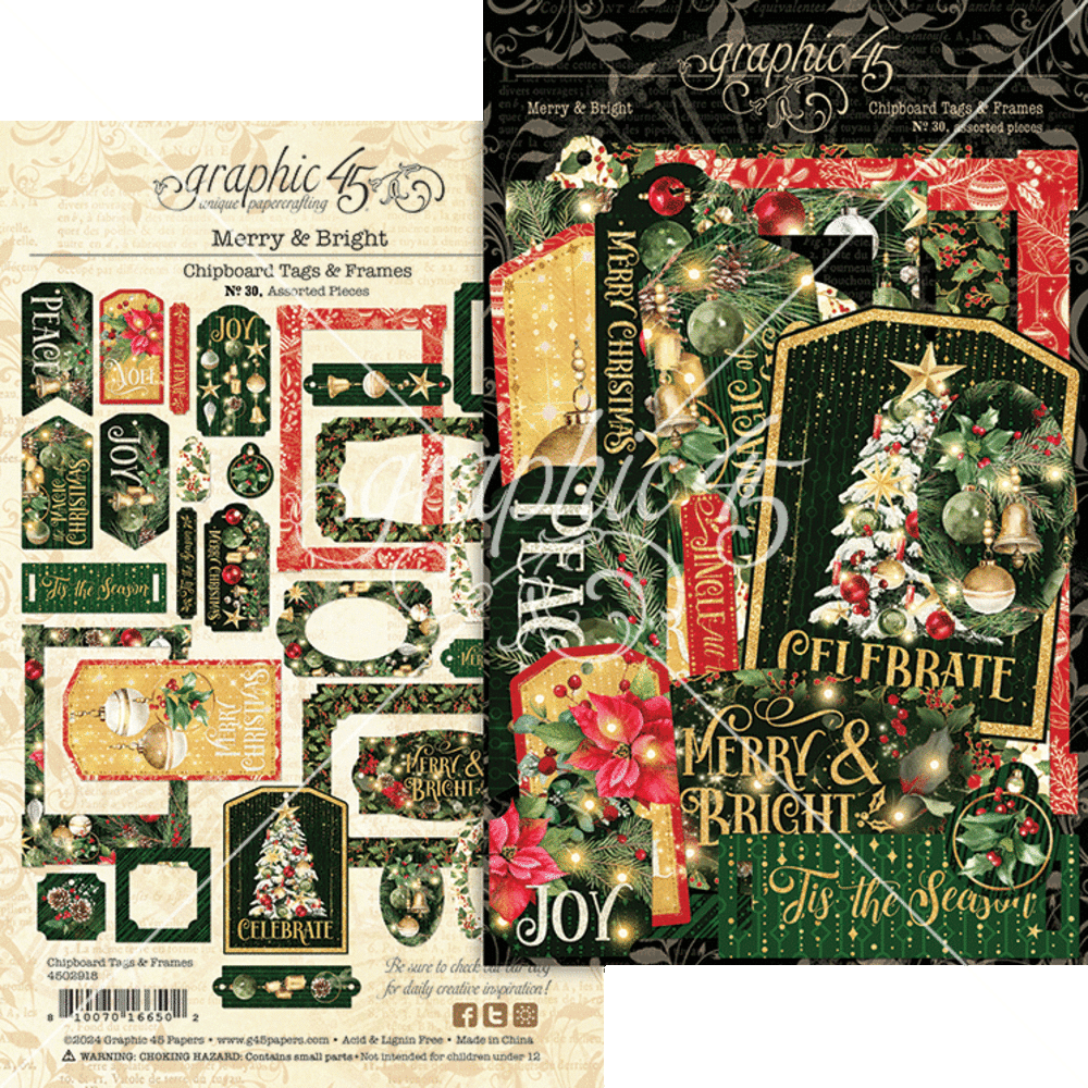 Η Graphic 45 έχει κρυφό άσο στο μανίκι που ακούει στο όνομα Merry & Bright! Η συλλογή Merry & Bright της Graphic 45 καλωσορίζει τα Χριστούγεννα με μια εκπληκτική σειρά scrapbooking elements που αποτυπώνουν τη μαγεία της τόσο γιορτινής και χαρούμενης εποχής. Η συλλογή κινείται στις χριστουγεννιάτικες αποχρώσεις του κόκκινου, του πράσινου, του χρυσού και του ασημί συνδυάζοντας αρμονικά το κλασικό με το μοντέρνο. Κάθε στοιχείο είναι προσεκτικά σχεδιασμένο με περίτεχνες λεπτομέρειες, από χριστουγεννιάτικα δέντρα και εορταστικά διακοσμητικά σε χιονισμένα κουκουνάρια και όμορφα αλεξανδρινά.