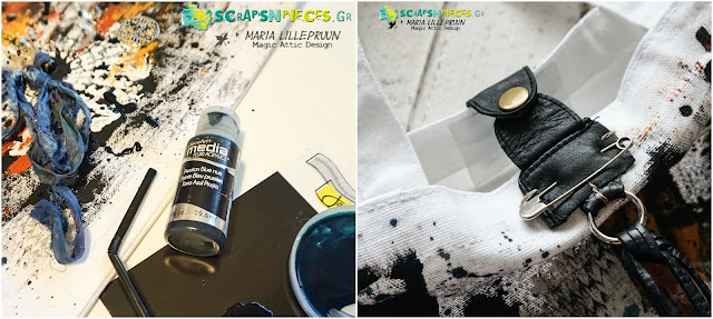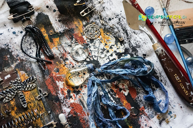 4. I glued the embellishments on the bag using contact glue (used metals and textile ribbons from my dt box)