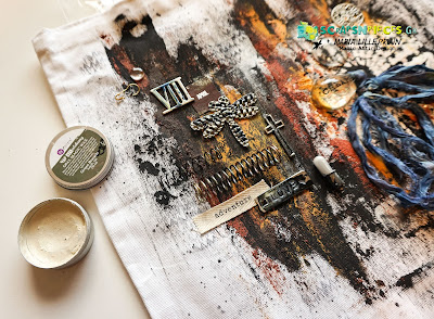 3. While waiting for the embelishments to dry, I applied some rust onto the bag using Rust effect pastes.