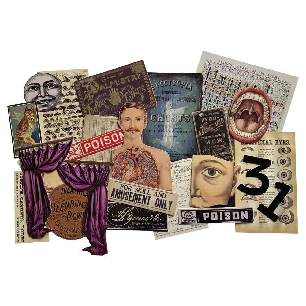 28 die cut και εφήμερα διακοσμητικά σε διάφορα σχέδια ιδανικά για layering από τον Tim Holtz με θέμα το Halloween.