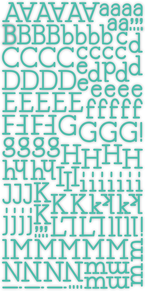 285 puffy αυτοκόλλητα, σε γαλάζιο χρώμα, με τα γράμματα της λατινικής αλφαβήτου (κεφαλαία, μικρά), αριθμούς και σύμβολα.