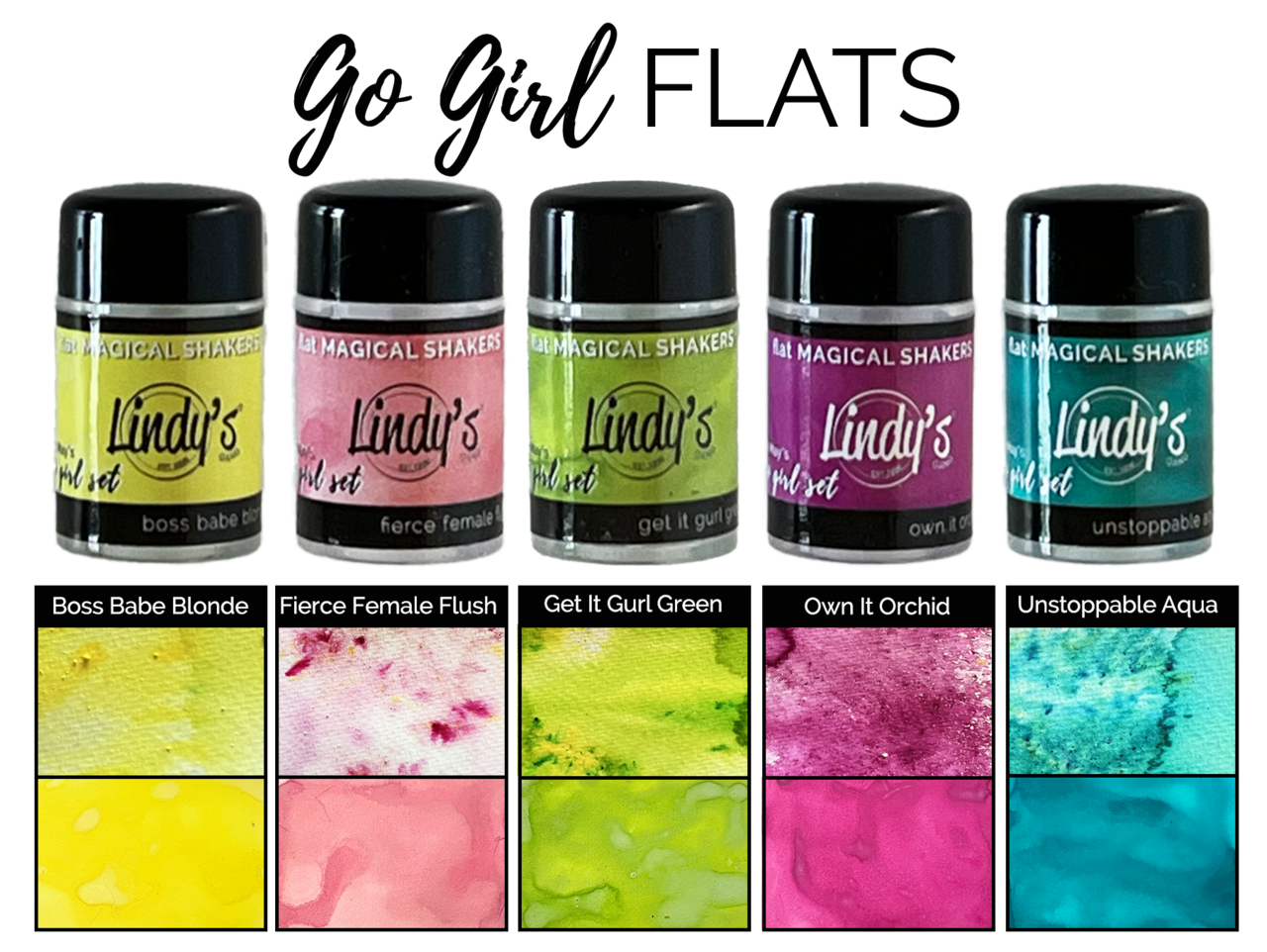 lindy's stamp gang magical shaker 2.0 Go Girl! Flats powder dye powedered-dye mica χρωστική σε σκόνη κατάλληλη για ξύλο χαρτί ρητίνη πολυμερή πηλό for clay resin paper wood blue μπλε κίτρινο γαλάζιο τυρκουάζ sky blue aqua purple μωβ yellow green πράσινο pink ροζ