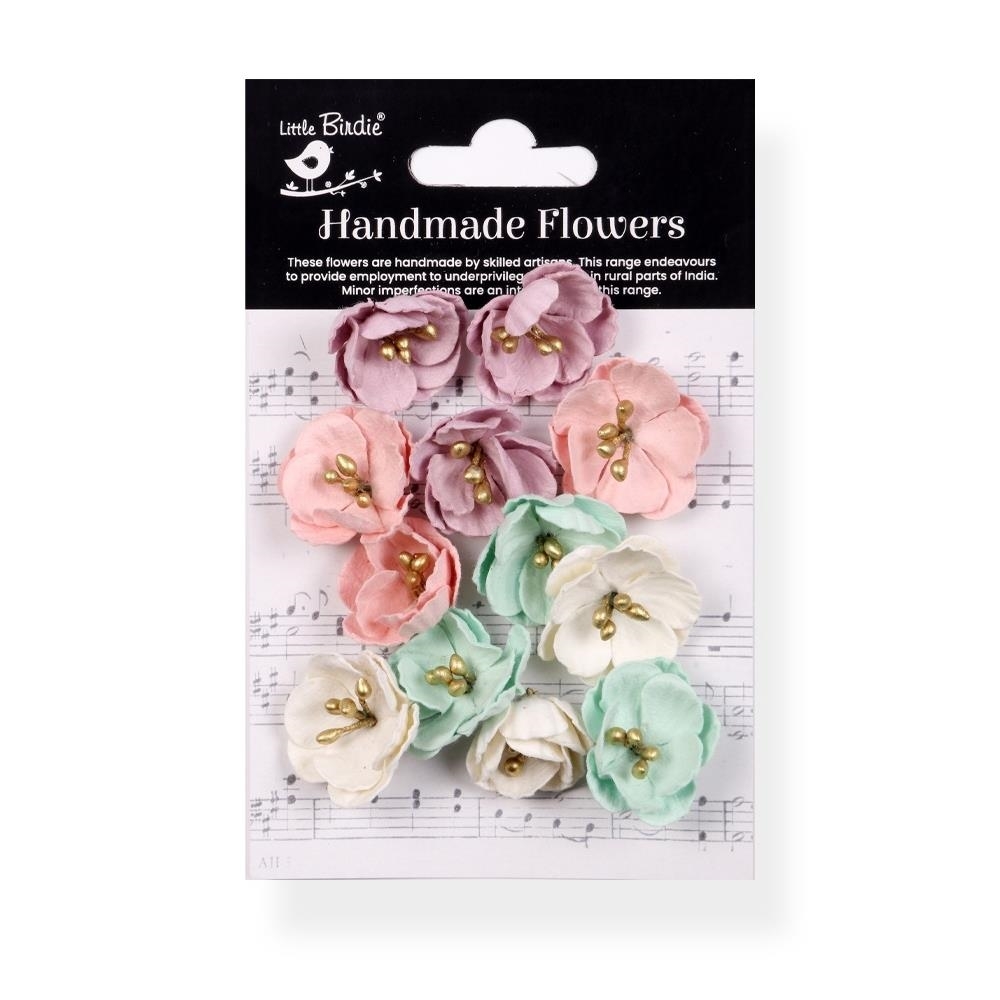 12 χειροποίητα, χάρτινα λουλούδια από τη συλλογή Embossed Daisies της Little Birdie. Με χρυσό στήμονα που χαρίζει vintage άρωμα στις δημιουργίες σας.