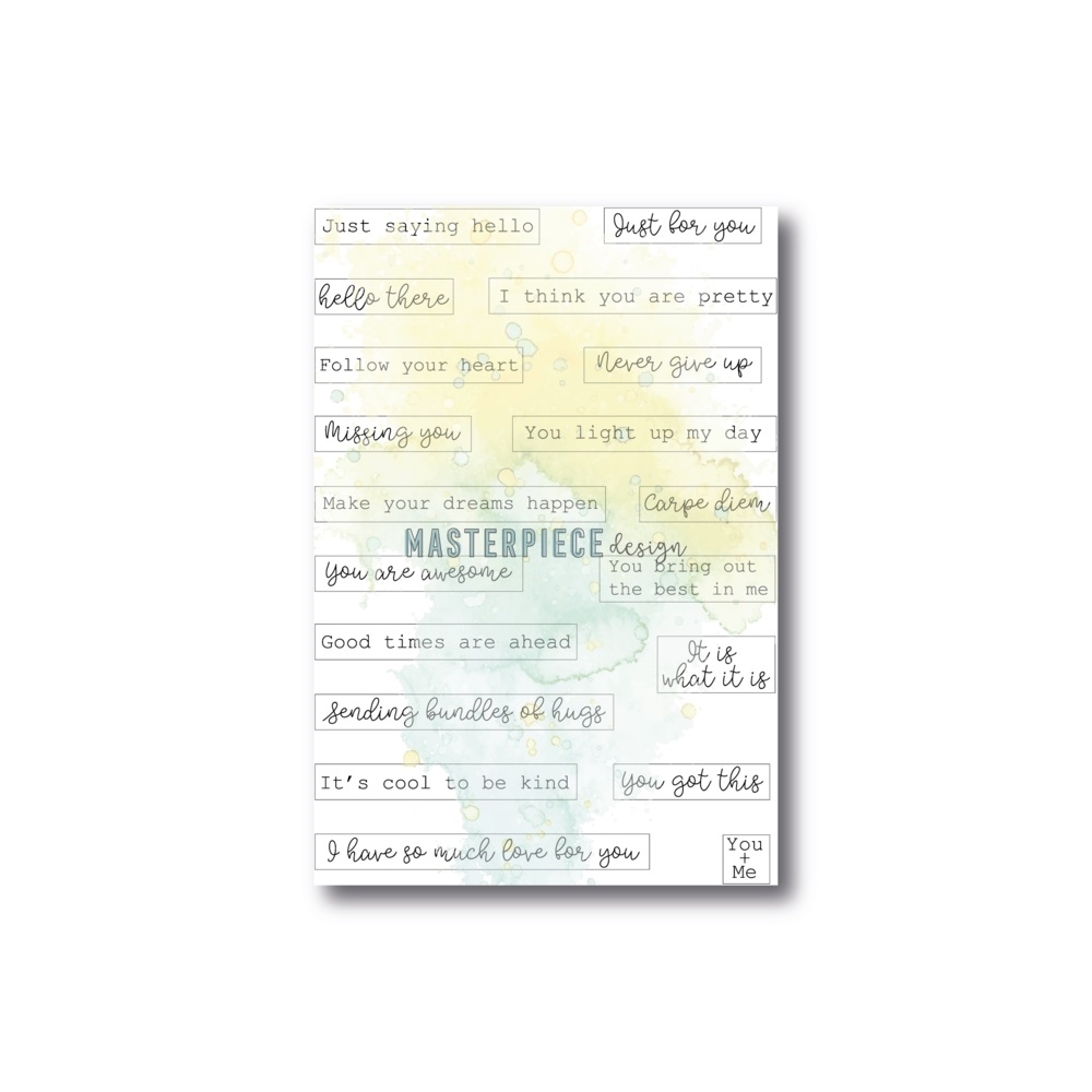 Σετ με 19 διάφανες σφραγίδες από την Masterpiece Design. Σε σχήμα ετικέτας και με quotes όπως Good Times are Ahead, It's good to be kind, Make your dreams happen και άλλα.