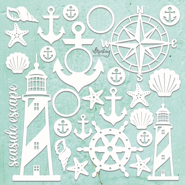 Διακοσμητικά chipboard από την Mintay Papers. Η σειρά Seaside Escape είναι μια θαλασσινή ιστορία για μια βόλτα στην παραλία, εκεί όπου κοχύλια και αστερίες χορεύουν αρμονικά κάτω από το βυθό της θάλασσας. Είναι όταν περπατάτε σε όμορφους αμμόλοφους ή κάθεστε ήσυχα κάπου, παρέα με τον εαυτό σας, ατενίζοντας τα κύματα που σκάνε σε μοναχικούς φάρους. Μπορεί να είναι καλοκαίρι ή χειμώνας, διακοπές ή μια συνηθισμένη μέρα. Στην πραγματικότητα η ιστορία είστε εσείς!