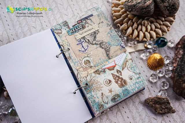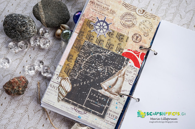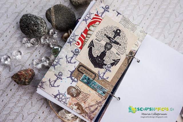 I was inspired by the blue and white colors, by red details, by fish and octopus on the banner :) To create it I used Prima Marketing and Carta Bella Papers .