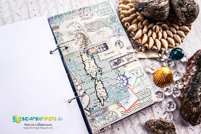 I made a vintage marine notebook "Bon voyage" inspired by our Greek summer mood board. It is 20x12 cm and contains 60 white paper sheets and 3 double.-sided dividers.