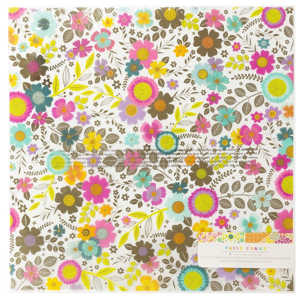 1 ειδικό φύλλο acetate, διαστάσεων 12"x12", από τη συλλογή Splendid που έχει σχεδιάσει αποκλειστικά η Page Evans για την American Crafts. Το χαρτί έχει εικόνες από πολύχρωμα λουλούδια με χρυσές foil λεπτομέρειες. Μπορείτε να το χρησιμοποιήσετε μόνο του ως scrapbooking σελίδα ή απλά να κολλήσετε στο πίσω μέρος του ειδικού σας χαρτιού, ένα μονόχρωμο χαρτόνι. Ό,τι κι αν επιλέξετε, το αποτέλεσμα θα είναι εντυπωσιακό!