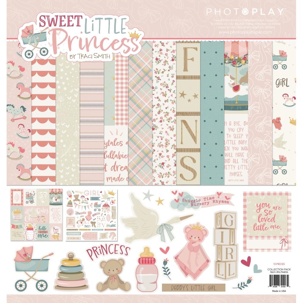 12 φύλλα scrapbooking διπλής όψης και 1 cardstock φύλλο με αυτοκόλλητα από τη συλλογή Sweet Little Princess που έχει σχεδιάσει η Traci Smith για την Photoplay.