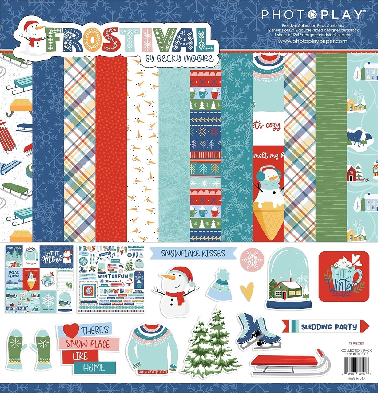 Συλλογή από χαρτιά scrapbooking διπλής όψεως από την Frostival για την Photoplay. Η συλλογή της Photoplay από την Becky Moore είναι γιορτινή, είναι παιχνιδιάρα με πρωταγωνιστή τον μοναδικό Frosty που σας δίνει παγωμένα χειμωνιάτικα φιλιά!