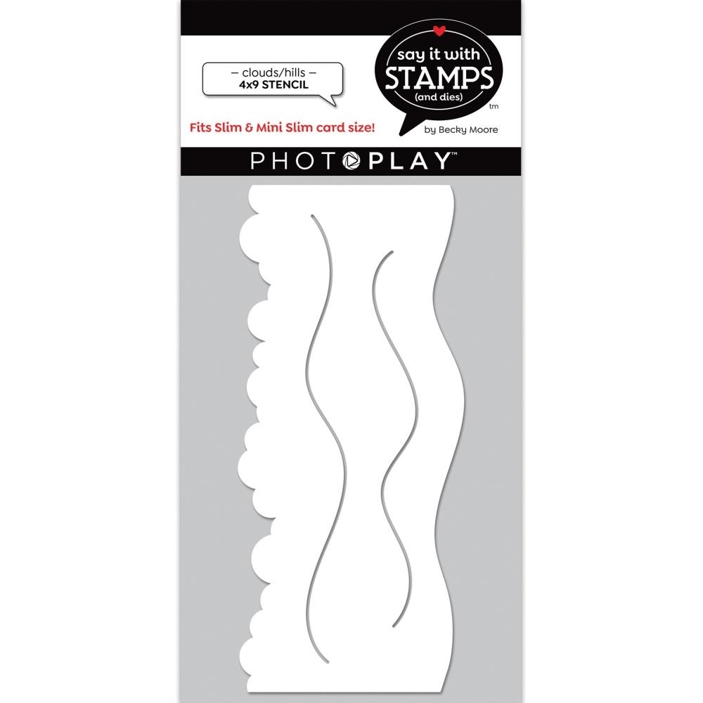 Stencil από την συλλογή της Becky Moore «Say It With Stamps» για την PhotoPlay. Πέρα από τους λόφους και τόσο μακριά! Ταξιδέψτε τα scrapbooking, mixed media και άλλα έργα σας σε ένα συναρπαστικό μακρινό ταξίδι!