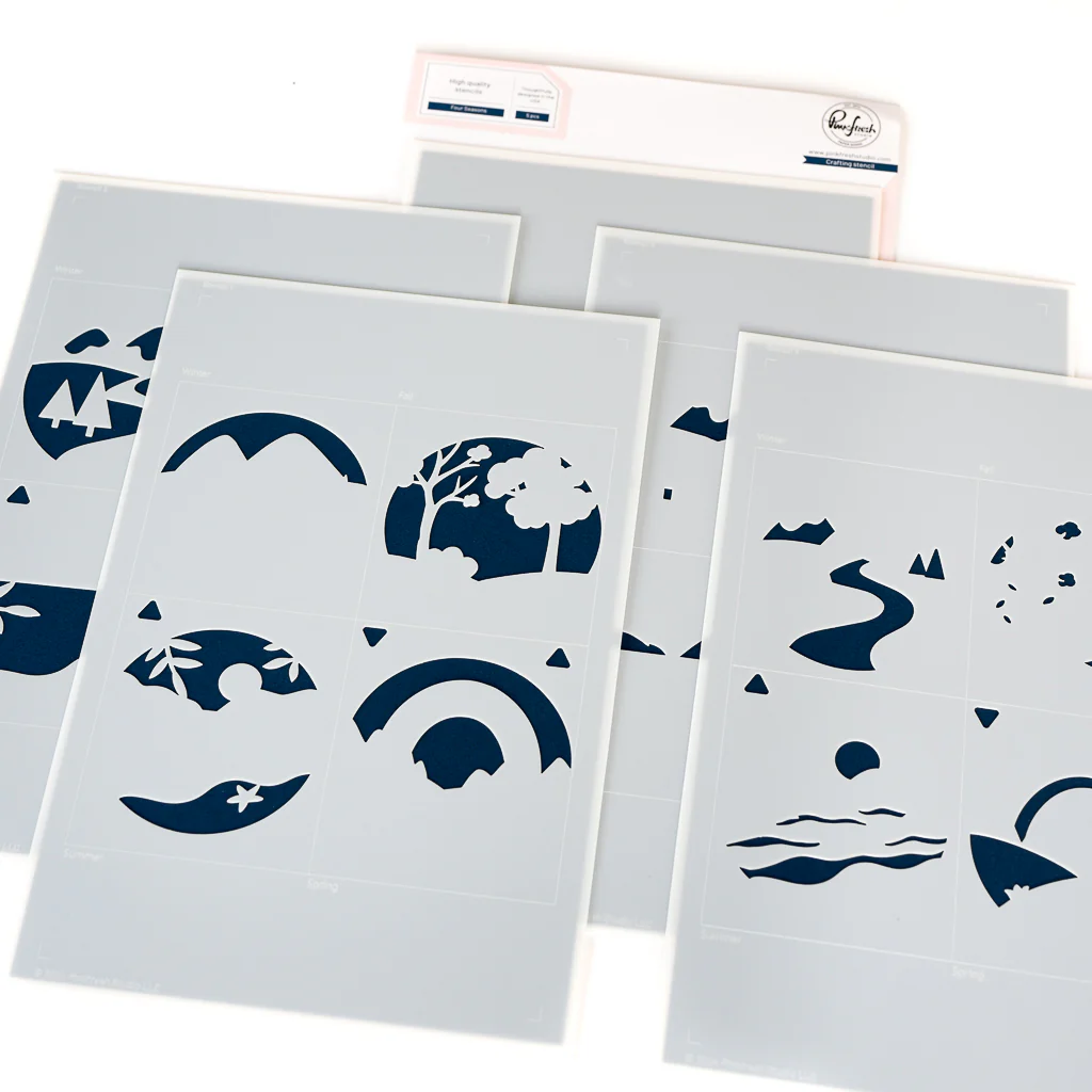 στενσιλ στενσιλς μάσκα μάσκες set σετ stencil stencils template templates layering layered pinkfresh studio for για Inna Moreva four seasons 4 εποχές άνοιξη φθινόπωρο χειμώνας καλοκαίρι spring summer winter fall autumn