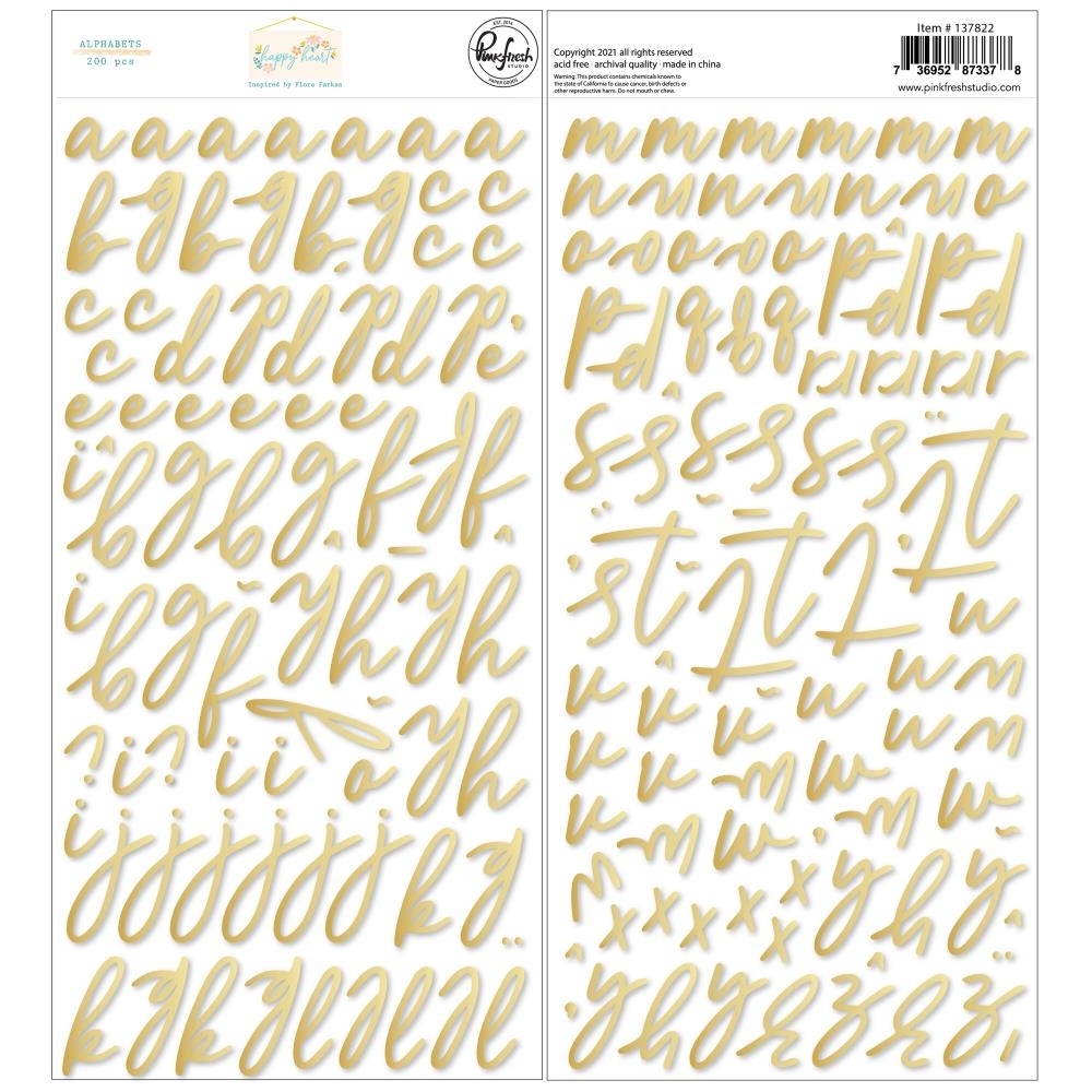 Αν θέλεις να προσθέσεις τίτλους και μηνύματα που φαίνονται “τελειωμένα” χωρίς να ψάχνεις γραμματοσειρές ή αυτοκόλλητα ένα-ένα, τα Happy Heart Puffy Alphabet της Pinkfresh Studio είναι η πιο πρακτική λύση. Τα γράμματα είναι καλλιγραφικά, σε κομψό χρυσό χρώμα, και το puffy φινίρισμα δίνει διακριτικό ύψος ώστε ο τίτλος να γίνεται αμέσως focal στοιχείο.