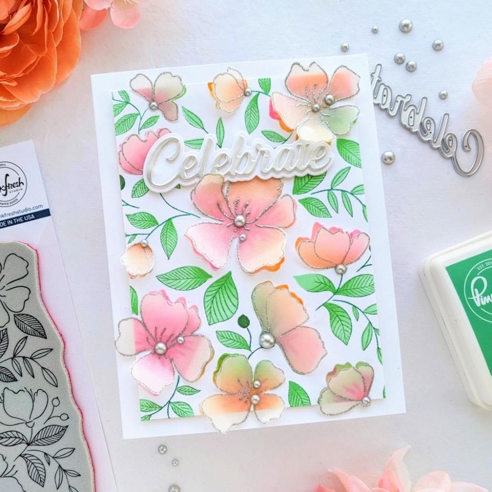 Σετ με 4 layering στένσιλ της Pinkfresh Studio. Χρησιμοποιήστε τα για να δημιουργήσετε μια πολυ-επίπεδη εικόνα με λουλούδια.