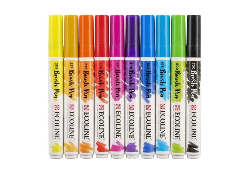 Σετ από 10 brush μαρκαδόρους , της πολύ αγαπημένης σειράς Ecoline Της Royal Talens. Λόγω της μοναδικής τους φόρμουλας με υψηλής ποιότητας χρωστικές αναμειγμένες με αραβική κόμη, οι μαρκαδόροι της σειράς δίνουν το ίδιο δυνατά και όμορφα χρώματα με τις liquid ecolines.